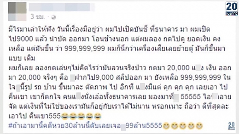 น้องเกมส์ เล่าต่อว่า ตนจึงตัดสินใจลองกดเงินออกมาดู 2 หมื่นบาท ว่าเงินจะออกมาได้จริงไหม ผลปรากฏว่า เงินออกมาได้จริง ตนและพี่ก็ช็อก ซึ่งตอนนั้นมีคิดในหัวว่า ถ้ามีเงินขนาดนี้จะเอาไปทำอะไรหมด แต่ก็ตัดสินใจรีบเอาไปคืนที่ธนาคาร เนื่องจากคิดว่าถ้าตนเอาเงินไปใช้ คนอื่นจะต้องเดือดร้อนแน่ เช่น พนักงานคนที่ทำบัญชีให้ตน ก็จะต้องเดือดร้อนมารับผิดชอบแน่นอน รวมถึงเจ้าของเงินด้วย