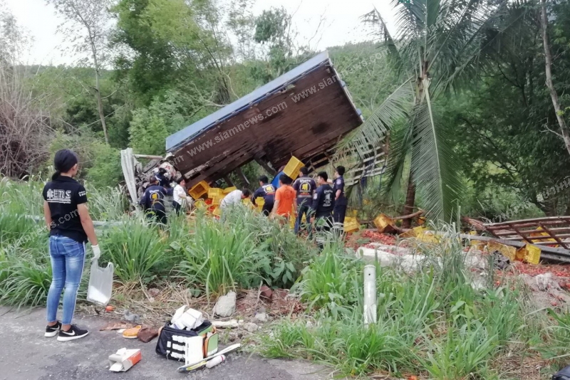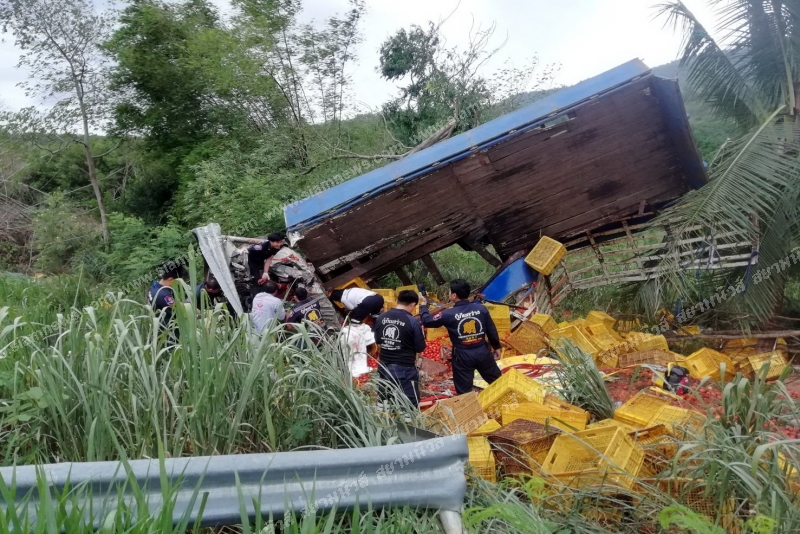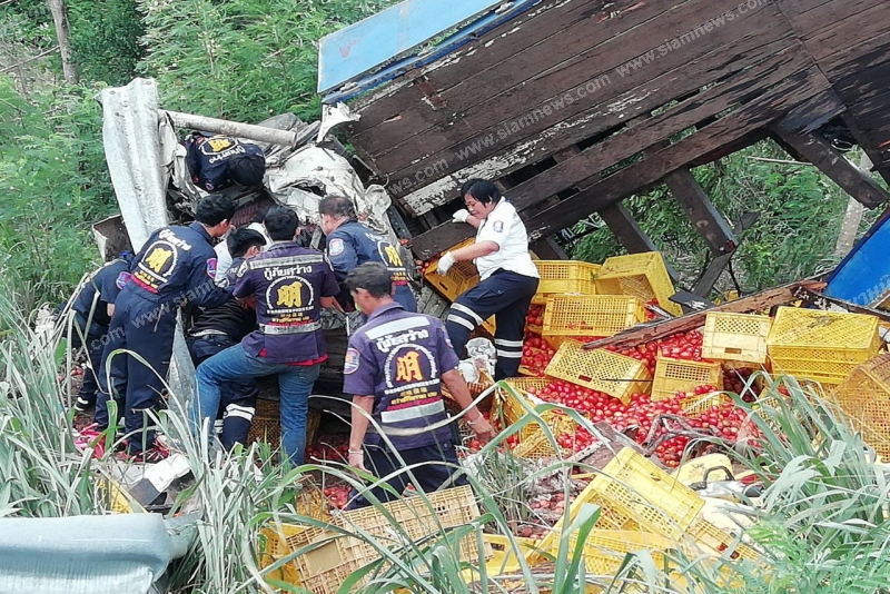 เมื่อเวลา 07.00 น. วันที่ 4 ก.ค.62 รตอ.ยงยุทธ พลซา รอง สว.(สอบสวน) สภ.วังสะพุง จ.เลย รับแจ้งมีเหตุรถบรรทุกมะเขือเทศลงเขาเบรกแตกพลิกคว่ำมีผู้บาดเจ็บ ทางลงเขาโค้ง 100 ศพ ต.หนองงิ้ว อ.วังสะพุง เมื่อรับแจ้งประสานไปยังแพทย์ รพ.วังสะพุง กู้ภัยสว่างคีรีธรรม จุดวังสะพุง จุดสานตม เดินทางไปที่เกิดเหตุ