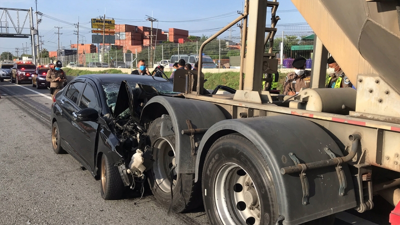 เมื่อเวลา 07.30 น. วันที่ 21 พ.ค.2563 พ.ต.ต.กองพล เดชะคำภู สว.(สอบสวน) สภ.หนองขาม จ.ชลบุรี ได้รับแจ้งว่าเกิดเหตุรถยนต์เก๋งพุ่งชนท้ายรถบรรทุกผงพลาสติก มีผู้เสียชีวิตในที่เกิดเหตุ 1 ราย ภายในตัวผู้เสียชีวิตพบยาเสพติดซุกซ่อนอยู่ เหตุเกิดบริเวณถนนมอเตอร์เวย์ สาย 7 ตอนที่ 2 ฝั่งขาเข้าชลบุรี ช่วงกม.ที่ 103+100 ก่อนถึงสะพายตอพยอม ม.2 ต.บึง อ.ศรีราชา จ.ชลบุรี จึงรีบรุดไปตรวจสอบ พร้อมด้วยเจ้าหน้าที่ฝ่ายสืบสวน เจ้าหน้าที่ตำรวจทางหลวง และเจ้าหน้าที่หน่วยกู้ภัยสว่างประทีป ศรีราชา